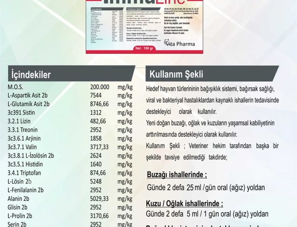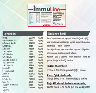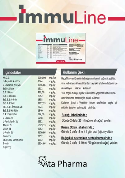 İmmuLine, yeni doğan hayvanlarda ishal ve enfeksiyon risklerini azaltarak sağlıklı bir büyüme ve gelişim sağlar. Bağışıklık sistemini güçlendiren ve solunum sorunlarını gideren etkileri sayesinde, kuzular ve buzağılar için güvenilir bir koruma ve destek sağlar.